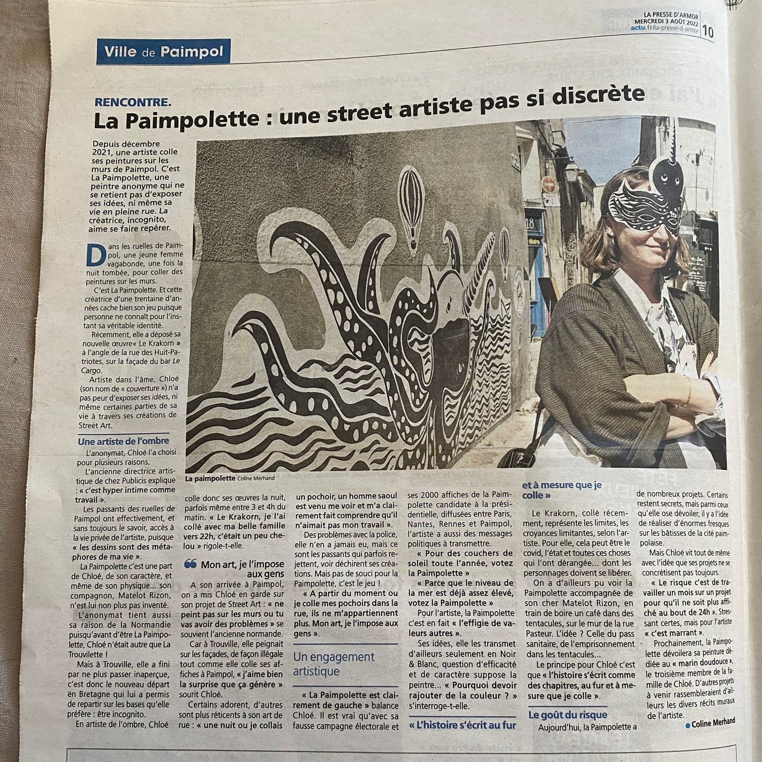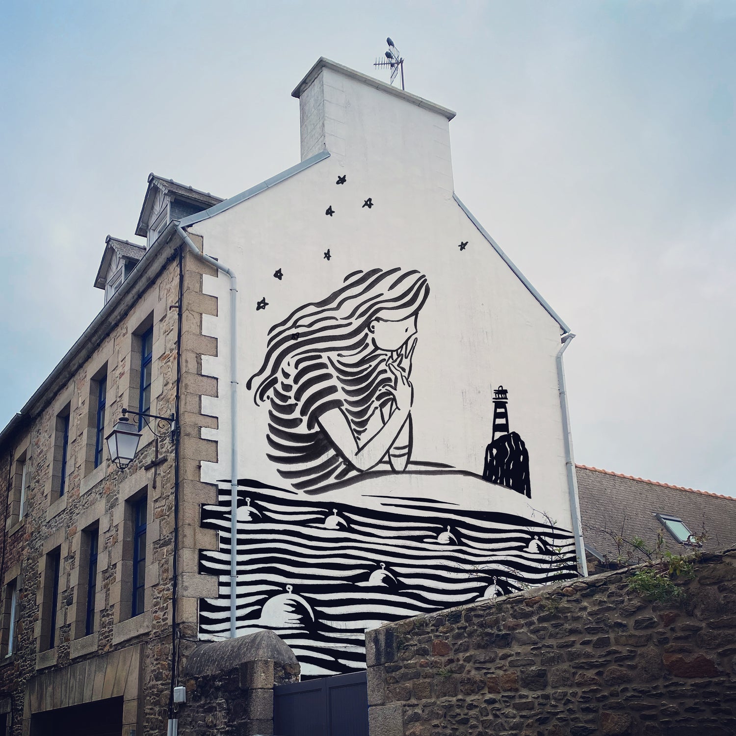 Pochoirs, affichages, collages, fresques, La Femme Capitaine s'exprime sur les murs de Paris, Normandie, Bretagne et même au Brésil et dans les Caraïbes.